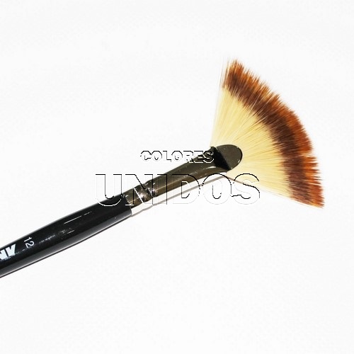 Pincel en forma de abanico A100 (ancho: 58 mm) con pelo sintético de 3 colores en imitación de mangosta en una virola sin costuras de color plateado y un mango lacado negro.